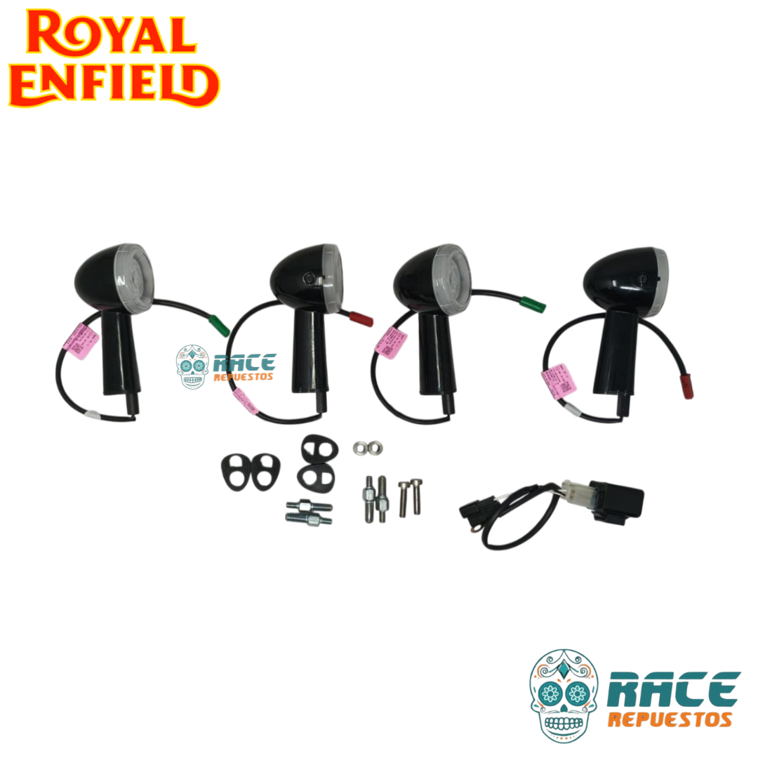 / Kit de 4 Intermitentes LED Negro ROYAL ENFIELD Super Meteor 650 Genuino (Direccionales, Señalizador)